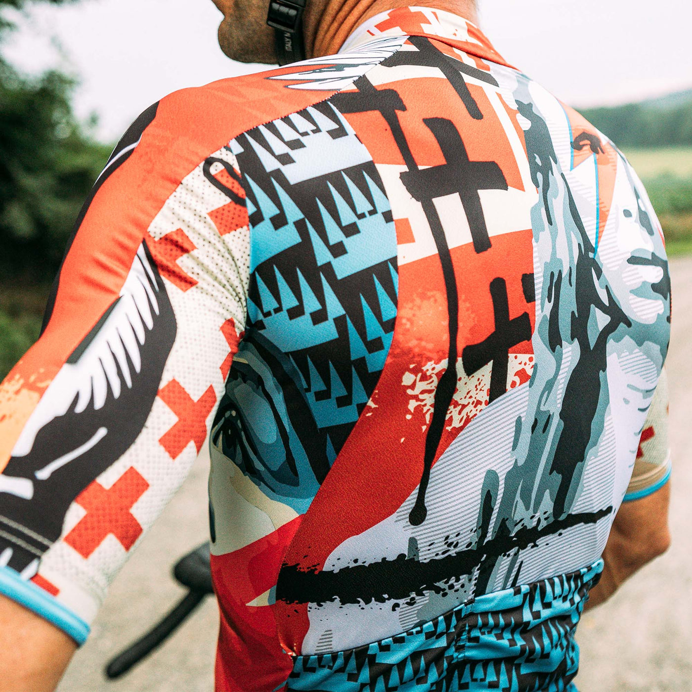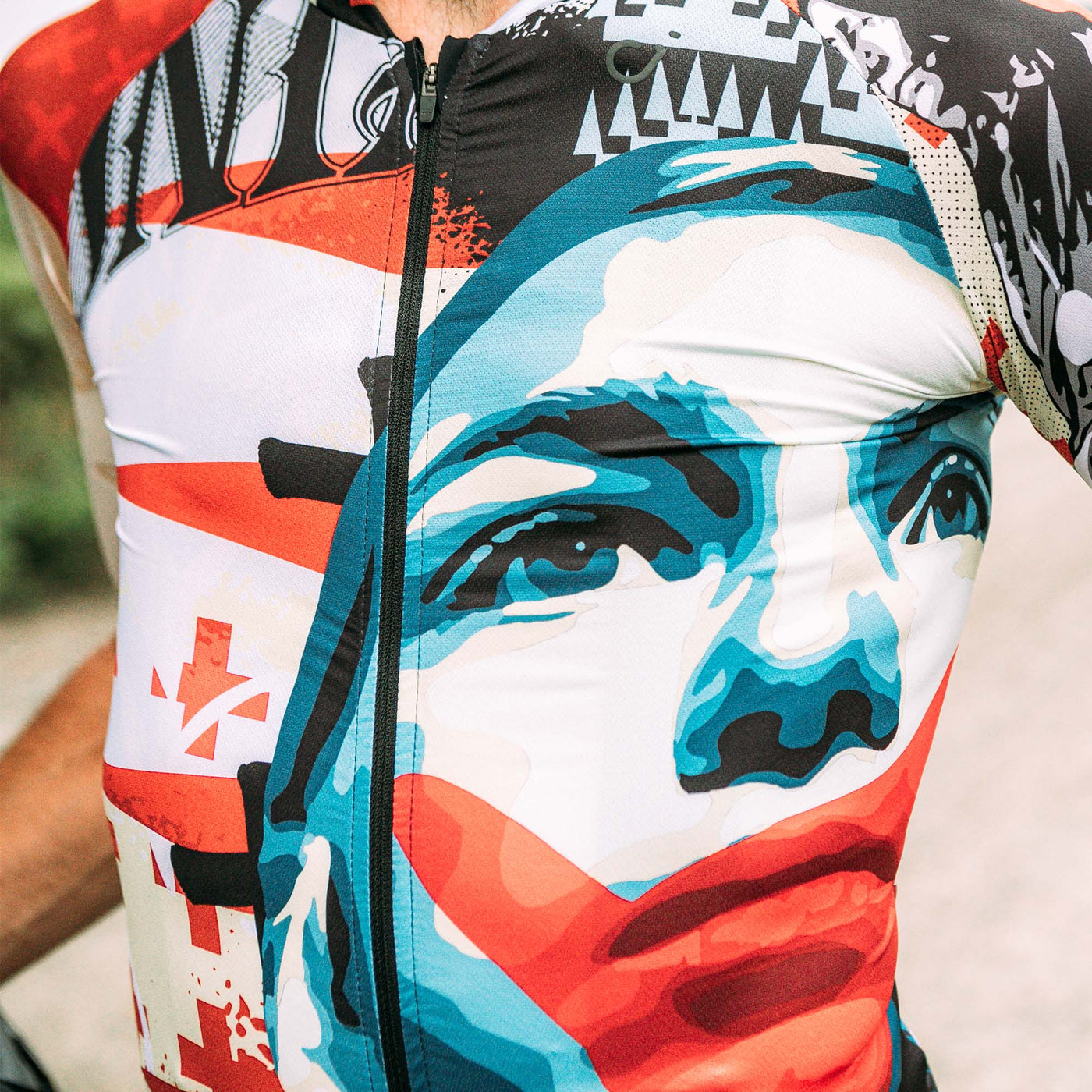 As an artist, Gregg layers symbolism in everything he does. Whether he’s taking words from the Dead Kennedy’s Jello Biafra, mixing images from comic books and turning them into a murals, or whether he’s wearing his hair long under his helmet and incorporating basket weave patterns into the finish on his Firefly 29er, Gregg is using the aesthetic as social commentary. Velocio has done the same, with jerseys that combine beautiful design with important messages. Throughout the production of this video, I’ve been impressed with Gregg’s incredible honesty and openness, if you have missed the symbolism in his other work it’s hard to ignore what he says here.