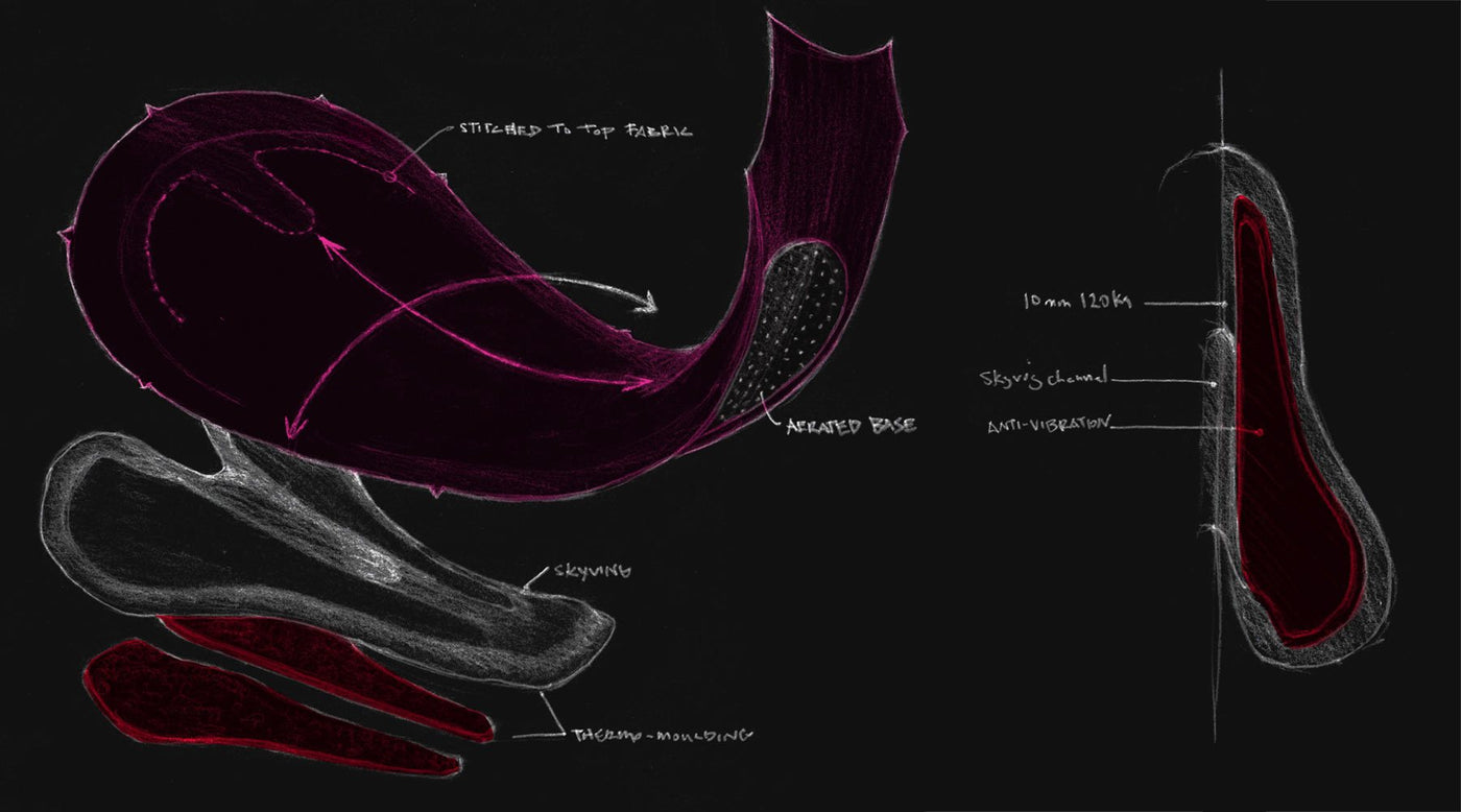 There is a better way to design a bib short. We started with a new pad. Not a sourced pad, nor a pad that we 3D printed, but our own new design for a cycling pad combining high density foam, anti-vibration inserts and a pre-shaped anatomically moulded contour with exceptional breathability.