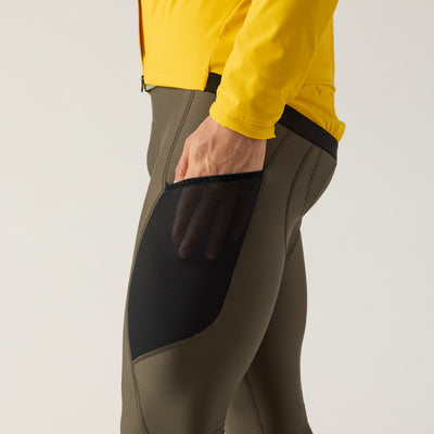 Highly compressive fleece-lined fabric optimizes muscle support and thermal regulation, while a strategically placed windproof panel through the seat provides extra weather protection where it is most important.